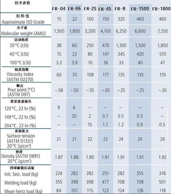 全氟聚醚油 高真空泵油 氧气压缩机油 全氟聚醚特种润滑脂 可靠性测试液 热传导液 气相焊接液 电子清洗液 其它特种油 常用对照表