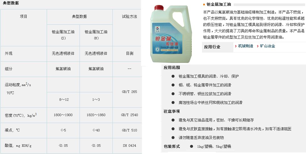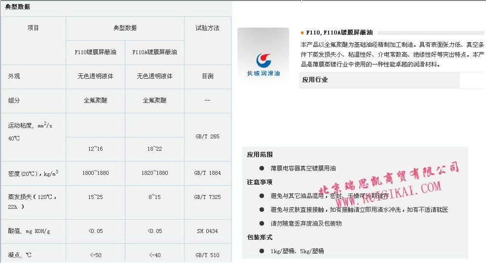 本公司与中国石化润滑油公司合作,代理销售其全系列全氟聚醚油产品、氟氯润滑油产品。发扬民族精神,振兴民族品牌,使中国的氟油产品,除军工以外,得到更多领域的应用。全氟聚醚油主要应用在:航空航天:如高低温润滑、密封圈、垫圈等电子工业:如电子元器件制造,电线、电缆、光纤、光缆生产、电子元器件、电路板的焊接、检测、热传导等另外,在化学工业、制药工业、造纸机械、表面处理、食品工业等领域也广泛使用。氟氯润滑油主要应用在:氧气制造设备、特殊金属拉丝等领域。