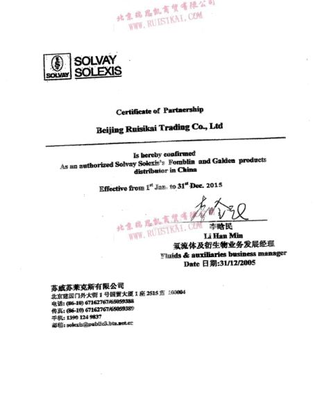 北京瑞思凯商贸有限公司是一家致力于氟流体应用的专业供应商。在其所涉及的半导体制造、电子产品加工制造、航天航空、氧气制备、核工业、石油开采、医药制造、军工等多个行业,公司的产品都得到广泛应用。是一家集技术、营销和服务于一体的综合性企业。公司现为中国氟硅有机材料协会会员单位。公司依托中国化工集团总公司丰富的网络资源快速发展,客户遍及全国各地。公司拥有一支高素质、高效率的销售和技术服务队伍,形成了一个跨地区、跨行业的销售网络,拥有年轻化、知识化、专业化的员工团队,展现出一片勃勃生机!